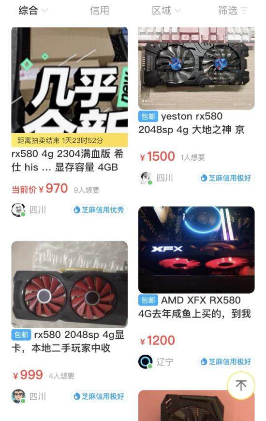 二手平台上,矿商依旧在高价收购RX 580 8G显卡