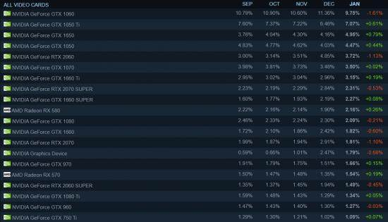 steam公布的2021年1月硬件调查报告