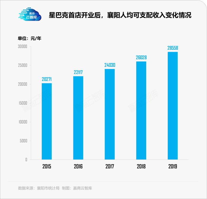 随着城市咖啡消费市场逐步打开,及人均可支配收入的逐步提升,星巴克在2020年继续加码襄阳城门店布局,分别进驻了天元四季城(2016年开业)、航空路民发广场(2017年开业),步步营造出“在襄阳喝咖啡,首选星巴克”品牌印记。