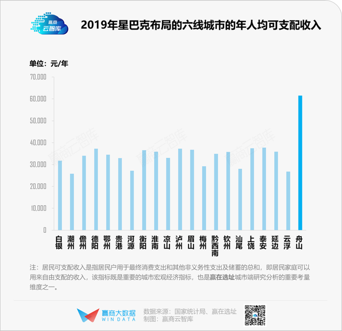 据统计,星巴克布局的21个六线城市(最低线级)平均人均可支配收入为34761.26元/年,最低值为25828元/年,对应数据为2152.33元/月。