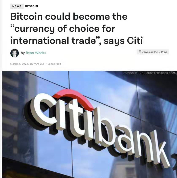 原标题:花旗银行积极购入比特币,各大主流机构看好BTC发展为哪般? 来源:链得得APP