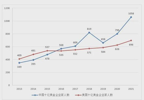 过去一年,中国增加了259位十亿美元企业家,顶级富豪增至1058位,成为世界上第一个拥有超1000位十亿美元企业家的国家。美国排名第二,十亿美元企业家达696位,比去年增加70位。中国和美国拥有的十亿美元企业家数量占了世界总数的54%。