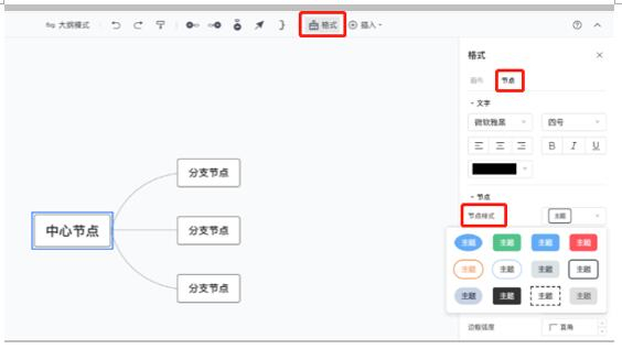 3、点击格式,可以在右侧编辑栏对节点文字和画布样式进行调整,自由发挥你的灵感。