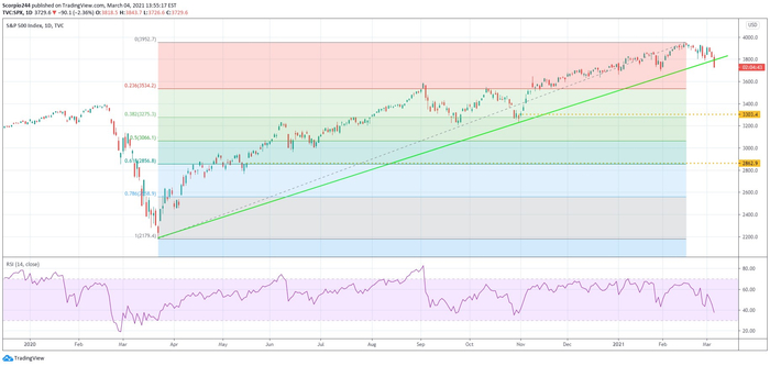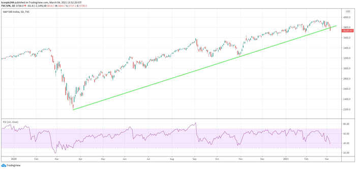 技术分析上讲,标准普尔500指数已打破去年3月以来的升势,这可能是一个非常负面的信号,表明趋势将有所改变。