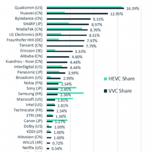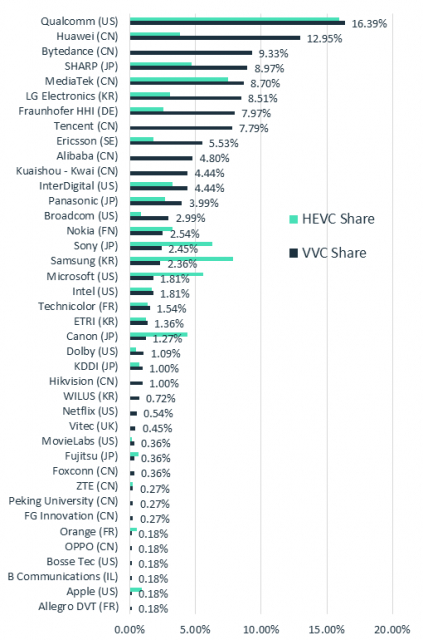 外媒统计VVC技术贡献:高通华为字节跳动位列前三