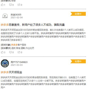 为获取流量,拼多多的手法比较激进,也引起消费者大量投诉。某消费者投诉平台显示,有关拼多多的投诉多达20万条,而京东、淘宝有超10万条,美团则不到5万条。