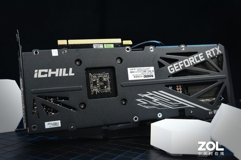 映众GeForce RTX 3060冰龙超级版显卡的背板尾部采用镂空设计,配合一体式的背板可以让热风迅速穿透散热鳍片以及背板,令显卡温度进一步下降,另外在背板靠近芯片部位也有散热孔设计,以便发热严重的元件能快速散热。