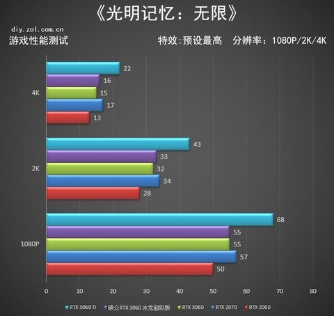 《德军总部新血脉》并且由于自带两个benchmark,所以我们的数据取跑分均值。映众GeForce RTX 3060冰龙超级版在2K分辨率下也能跑出85帧的高水准,而这只是一张入门级显卡,RTX 30系的实力确实不容小觑。