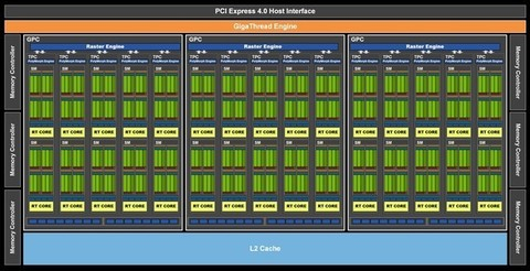 完整的GA106 GPU包含3个GPC(图形处理集群)15个TPC(纹理处理集群)以及30个SM(流处理器)组成,GPC是占据主导地位的高级模块,拥有所有的关键图形处理单元,每个GPC包含一个专用光栅引擎。在新的NVIDIA Ampere架构中,每个GPC还包含了两个ROP分区,每个分区包含8个ROP单元。