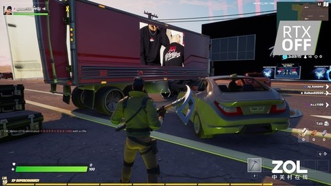 堡垒之夜的光追效果还是比较明显的,其中加入了反射、全局照明和路径追踪等效果。卡车车身上的反射较为明显,角色身上的环境光在打开光追后更为写实,另外仔细看的话远处建筑物的玻璃同样有光线的反射,整体画质改善非常明显。