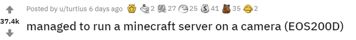 用佳能单反运行我的世界服务器,Reddit点赞37.4K