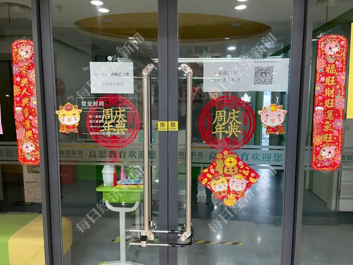 《每日经济新闻》记者今日(3月11日)走访教育机构云集的海淀黄庄,看到多家K12学科培优的机构门上都贴着来自于海淀区市场监督管理局所贴的告示,这份落款时间为2021年2月18日的《疫情防控提示》写着,“根据北京市政府统一要求,自1月23日起,全市培训机构暂停一切线下培训和集体活动”。
