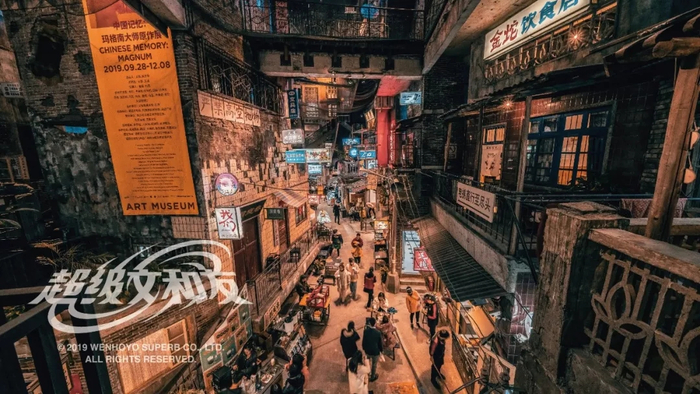 7层的“老楼”,20000㎡的占地面积,近100户人家,商铺30余间,文和友将长沙夜宵文化与市井文化融合,包括批发部、电游室、婚姻介绍所、麻将活动中心、歌舞厅、五金店、社区居委会、水果店等。除了场景静态馆,还有真实提供服务的商铺,比如理发店、洗脚城、录像厅等,而且全部都不收费。