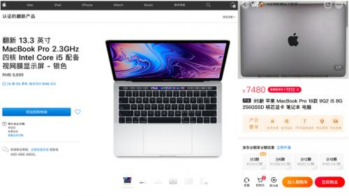 而转转严选95新13.3英寸MacBook Pro 2018款价格只要7480元,相比苹果中国官网直降2000多元。