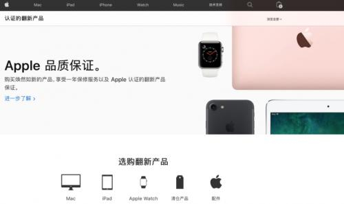 苹果中国官网一直有一个专门售卖翻新机器的专区,售卖Mac、iPad、APPle Watch,以及一些苹果配件等翻新产品。