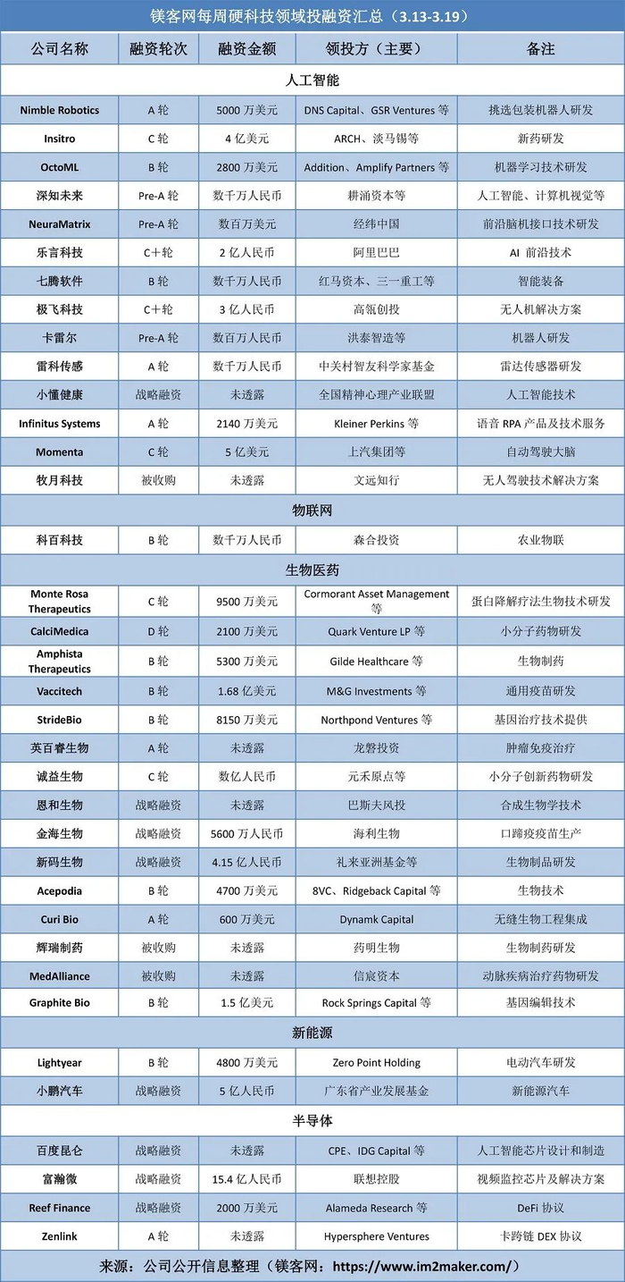 百度昆仑AI芯片完成独立融资,投后估值约130亿|镁客网每周硬科技领域投融资汇总(3.13-3.19)
