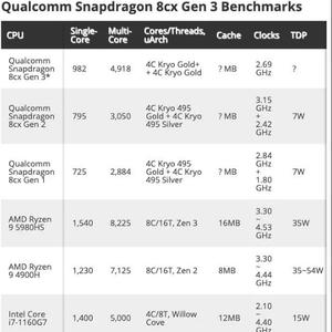 高通尚未正式宣布其Snapdragon8cxGen3,但有人已经向Geekbench数据库提交了运行新SoC的高通参考设计(QRD)平台的测试结果,正如NotebookCheck所发现的那样。