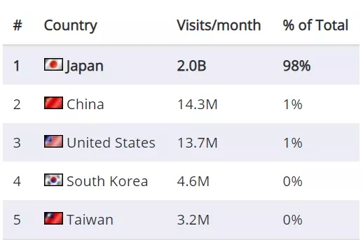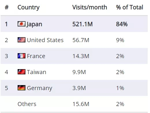 PayPay Mall 在日本一骑绝尘,月活量为 20 亿。亚马逊日本站和乐天则势均力敌,月活量各约为 5 亿次。