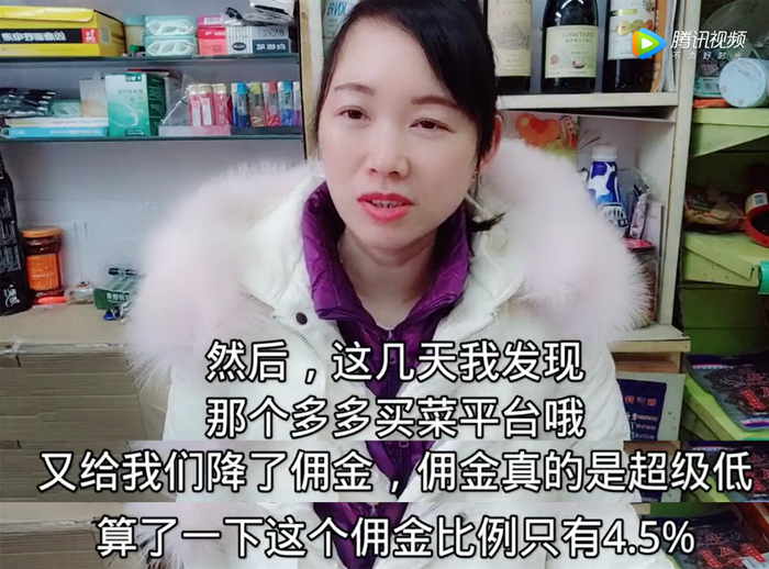 30多岁的阿霞和丈夫在沈阳经营着一家便利店,每天开店和做社区团购团长之余,她坚持发布Vlog视频记录生活日常。在最近一期Vlog中,阿霞坦言:看到多多买菜的佣金,心里好难受!没法生存了。