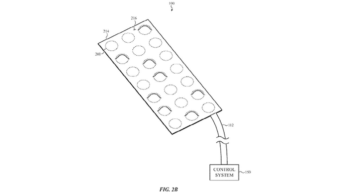 该系统可以被配置为以预定顺序扩展、收缩或以其他方式改变形状,以提供触觉输出。苹果指出,它可以用来“帮助用户放松,移动或叫醒用户,在床上触觉设备或其他电子设备上指示输出、警报或通知等等”。