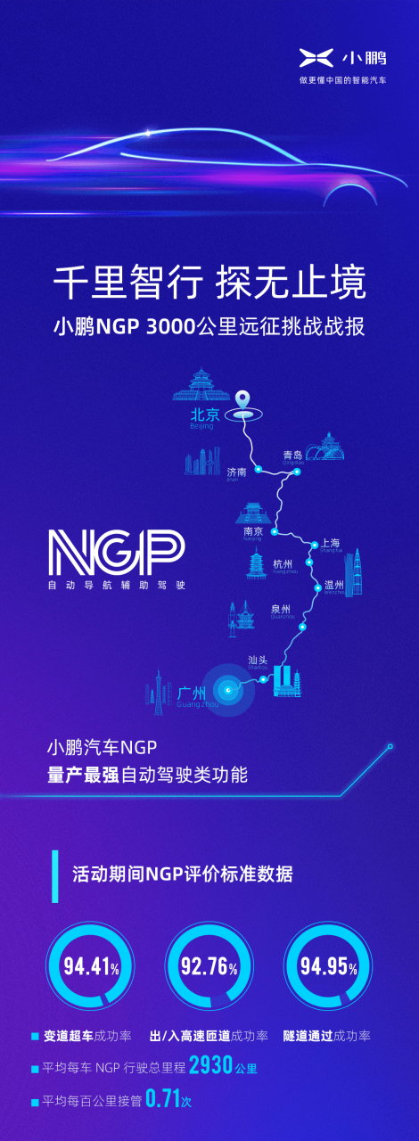 从这个角度来说,小鹏NGP 3000公里远征挑战,对于中国智能汽车在智能驾驶领域的突破,具备里程碑的意义。