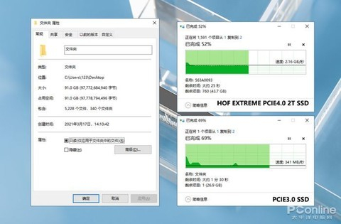 在日常电脑使用过程中,我们经常会进行大量的复制粘贴,而这就依靠SSD的读写性能,对此,我们将对比PCIe4.0 SSD和PCIE3.0 SSD进行测试,在盘内进行了大文件复制粘贴测试。