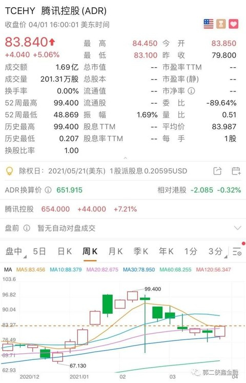在中国香港上市的腾讯控股,在美国粉单市场上发行的ADR,代码后缀是Y。