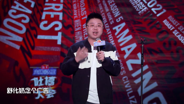 譬如:《吐槽大会》中,蓝河奶粉、Keep等品牌,会从李诞、王建国、呼兰、易立竞等嘉宾表演脱口秀时,不定期就出现,从弹幕和现场观众反应来看,喜剧色彩还是有的;