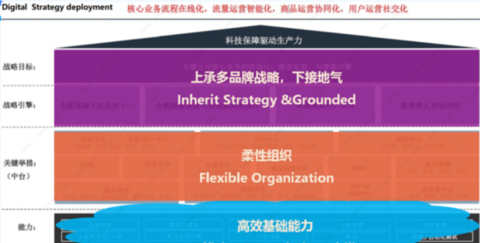核心在于让业务流程在线化,流量运营智能化,商品运营智能化,用户运营社交化。大家都知道,要驱动生产力,最大的保障就是科技和技术。
