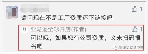 亚马逊官方公众号也在下面回复了关于工厂资质的问题。