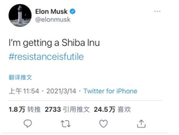 SHIB大热,无疑和马斯克推特发文有直接关系。此前马斯克曾称赞SHIB,并购买了SHIB。这自然会引起很多人注意。