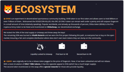 Shiba Inu社区的这种做法,使得每个人都必须在公开市场上购买,使得开发人员不能在社区中倾销自己的团队代币,从而确保公平和完全的去中心化。而转至V神地址的代币,如果V神最后也参与项目开发,这50%的代币或许会充当生态基金的角色。