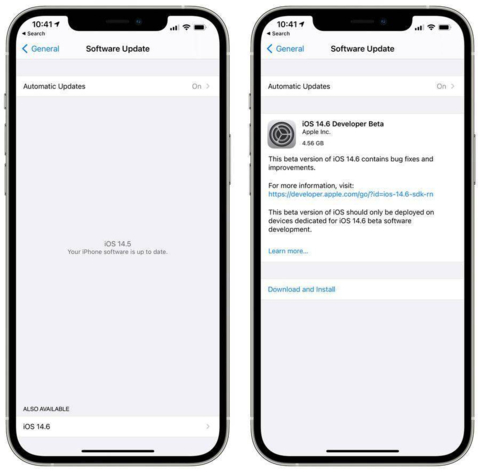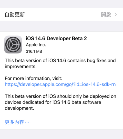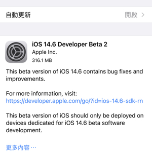 第二,就是支持测试版用户自行选择版本更新,考虑到部分用户不想再更新新的测试版本,因此 iPhone 不会自动下载 iOS 14.6 测试版,将在软件更新页面的底部新增一个选项,用户可以手动升级下一个测试版。如果是之前,用户不想更新一下测试版是需要手动删除描述文件的。