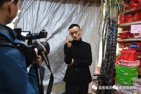 吴学林在媒体记者的邀请下对着摄像机模仿马云的“经典讲话”,但因为疏于练习,他总是忘词。