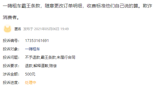 一嗨租车如此,消费者还能愉快租车吗?