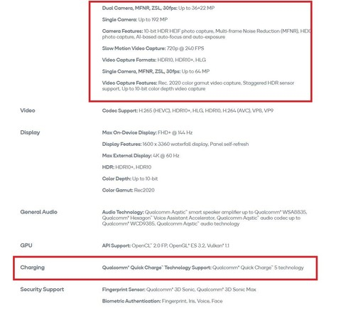 不过,骁龙778G在高通快充技术上却相比骁龙780G有所升级,由过去QC4.0+升级为QC5.0版本,能够提供100w+充电输出功率。至于骁龙778G的其他规格方面则与骁龙780G基本上没有太大的差异,包括DSP,音频芯片和显示屏规格等一脉相承。
