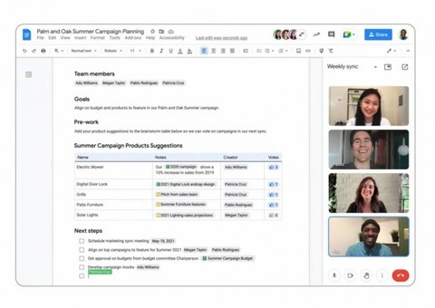 陪伴模式(Companion mode):每位远程用户都会有他们自己的“视频贴图”,这些将于今年晚些时候会发布。看起来你还可以直接在 Google Doc 中通过 Google Task 将任务分配给某个人。在Meet中将会有“自定义视图”。用户可以重新安排视频中人们在网格中的位置,另外还支持现场翻译。Soltero 表示这些功能会向所有用户开放,而不是仅限于企业 Workspace 用户
