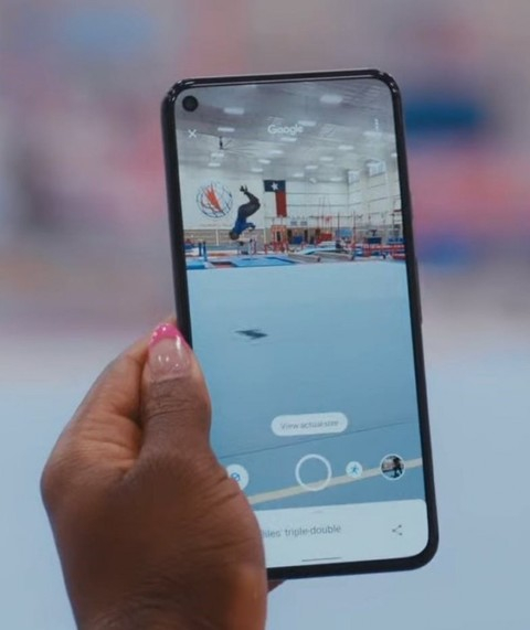 Raghavan回到舞台开始谈论增强现实。谷歌将著名运动员的AR虚拟化身带到搜索中。现在用户可以在AR中让西蒙·拜尔斯做体操。