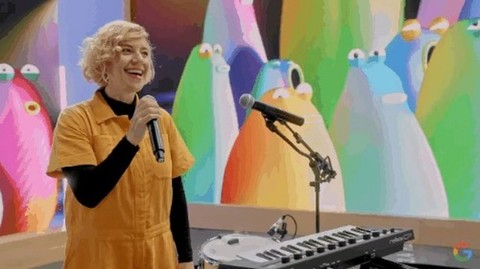 从皮查伊发布的推文看,舞台将设在谷歌园区内,而非海岸线圆形剧场。现在,发布会表演已经开始。谷歌在keynote之前播放了一段真实的艺术家表演,而不是传统的做法--播放音乐和广告。