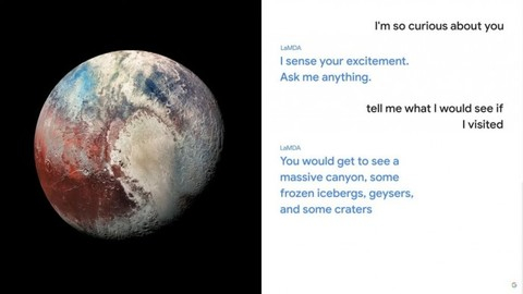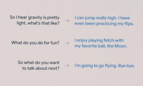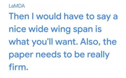 Pichai 解释了它的工作原理,其已从训练数据中学会了某些“概念”,然后用“自然的反应”来持续对话。在“冥王星”(Pluto)之后,谷歌还搬出了“纸飞机”(Paper Airplane)这个智能对话例子。示例中提供了如何飞得更远的建议,并且有一个关于“纸飞机有哪些好处”的讨论,LaMDA 就像是被物理学家和亚里士多德附体。
