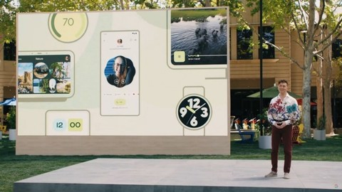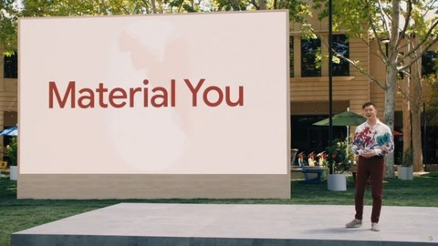 Matias Duarte 上台讲述设计方面的变化。回顾2014年推出的Material Design。抛砖引玉,介绍全新的 Material You 设计理念。UI元素又大又圆且多彩。“永远不会在易用性上妥协。”Material You 设计理念可迎合任何类型的应用程序,因为它自动集成了用户风格配色。Material You 将会在今年秋季率先登陆 Pixel 手机