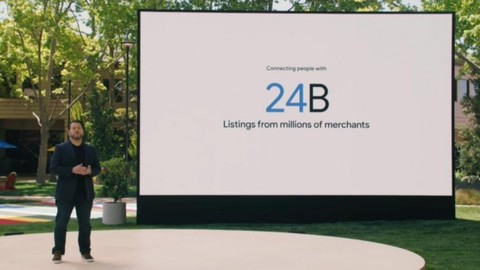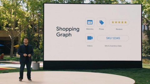 Bill Ready 上台介绍谷歌购物功能改进。Shopping Graph--一个购物知识图谱,它是一个很大的产品数据库,基本上是用谷歌的AI创建。它将有240亿个物品。