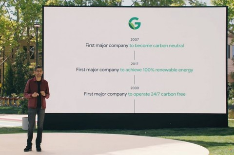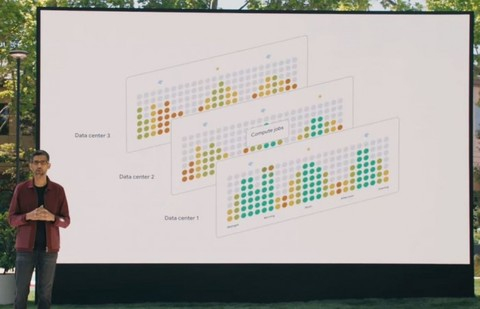 皮查伊谈到可持续性--碳中和、使用可再生能源问题。其承诺到2030年,谷歌将全天候使用无碳能源。Pichai 表示,许多数据中心已经达成或接近 90% 的无碳水平。当某个进程可被挪动时,谷歌将优先把它分配给一个能源碳排放更少的数据中心。Pichai称谷歌实现了跨越时间和地点的carbon-intelligent负荷转移。