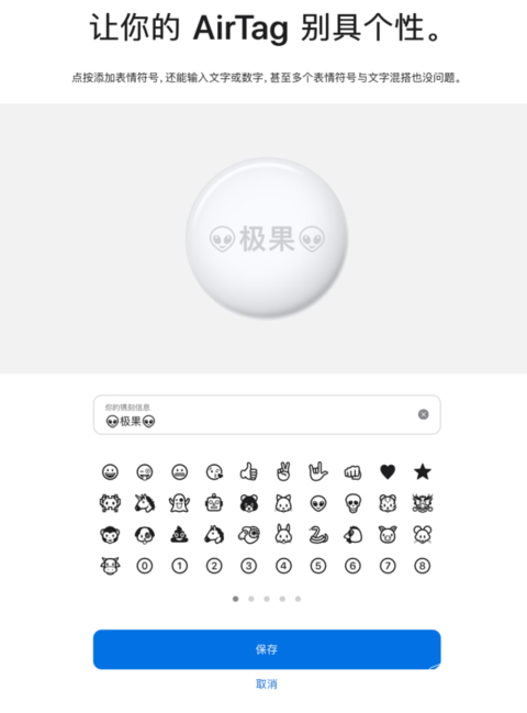 AirTag的正面是白色塑料材质,如果觉得单调,可以在苹果官网选购,能免费刻字。你要打算买好几个的话,还是刻字更好,这样不至于弄混。