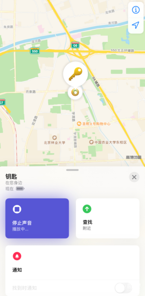 如果AirTag在 iPhone 的蓝牙连接范围内,不用多说,通过查找App直接来看它的位置就行,也可以点击“播放声音”,随着AirTag的响声去找就行了。