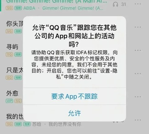 在以往,用户并不知道到底是哪个APP获取了自己的数据,但更新系统后,APP试图获取用户信息时,手机就会弹出选框,用户既能知晓APP的行径,也能自行设置是否开启广告追踪服务。