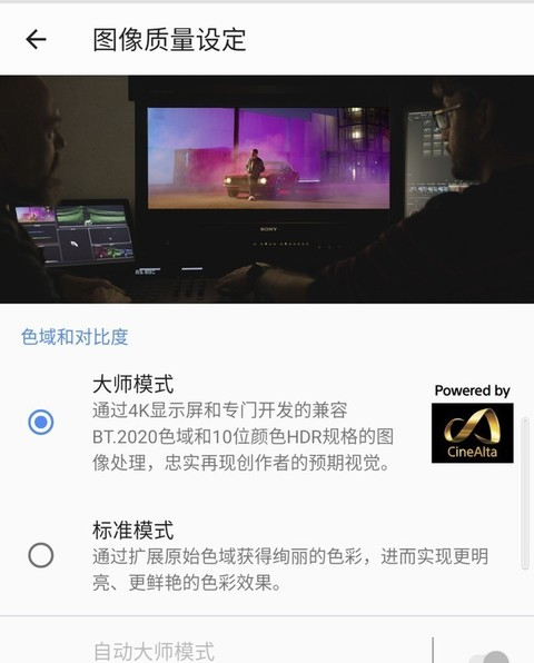 如果你对图形色彩准确性有更高要求,也可以在设置选项中手动选择“大师模式”,这项功能由CineAlta提供技术支持,用户可以在 “大师模式”下获得更加专业的色彩准确度。不但有助于提升视频观看体验,你甚至还可以用它来充当索尼微单的监视器,它也有能力为创造场景提供极为专业的显示支持。