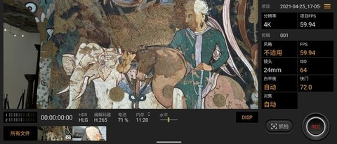 电影大师默认4K分辨率拍摄,当然你也可以手动调成2K分辨率。电影大师APP的菜单同样十分专业,视频录制的过程中会在取景界面显示录制时长、录音电频、焦段、ISO、快门速度等信息,常用参数都集中在右侧,触手可及方便调节。