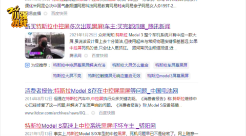 针对舒女士的遭遇,记者上网查询,发现特斯拉的中控屏黑屏,并非个例。