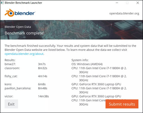 ▲另外,近期我们针对各种8核标压处理器引入了Blender批量测试,统一采用Blender 2.9.12版,由Blender Launcher自动下载并批量完成6个场景的渲染。这里给出i7 11800H的批量测试成绩,大家可点这里对比其他类型处理器。